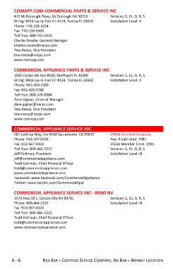 A - 6 RED BAR = CERTIFIED SERVICE COMPANY, NO BAR = BRANCH LOCATION